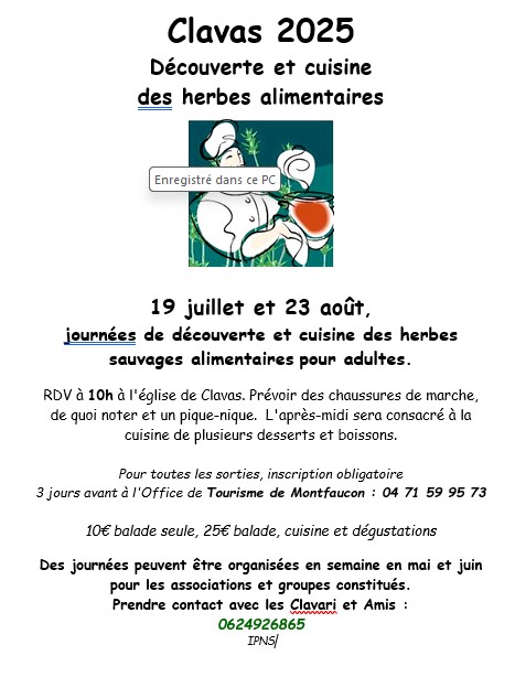 / 👨🍳Découverte et cuisine à Clavas le 19/07 et le 23/08🌿
