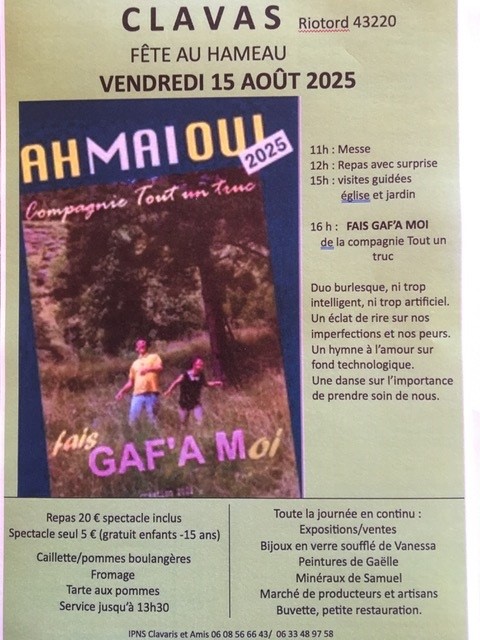 / 😀Fête à Clavas : le vendredi 15 août 🎈