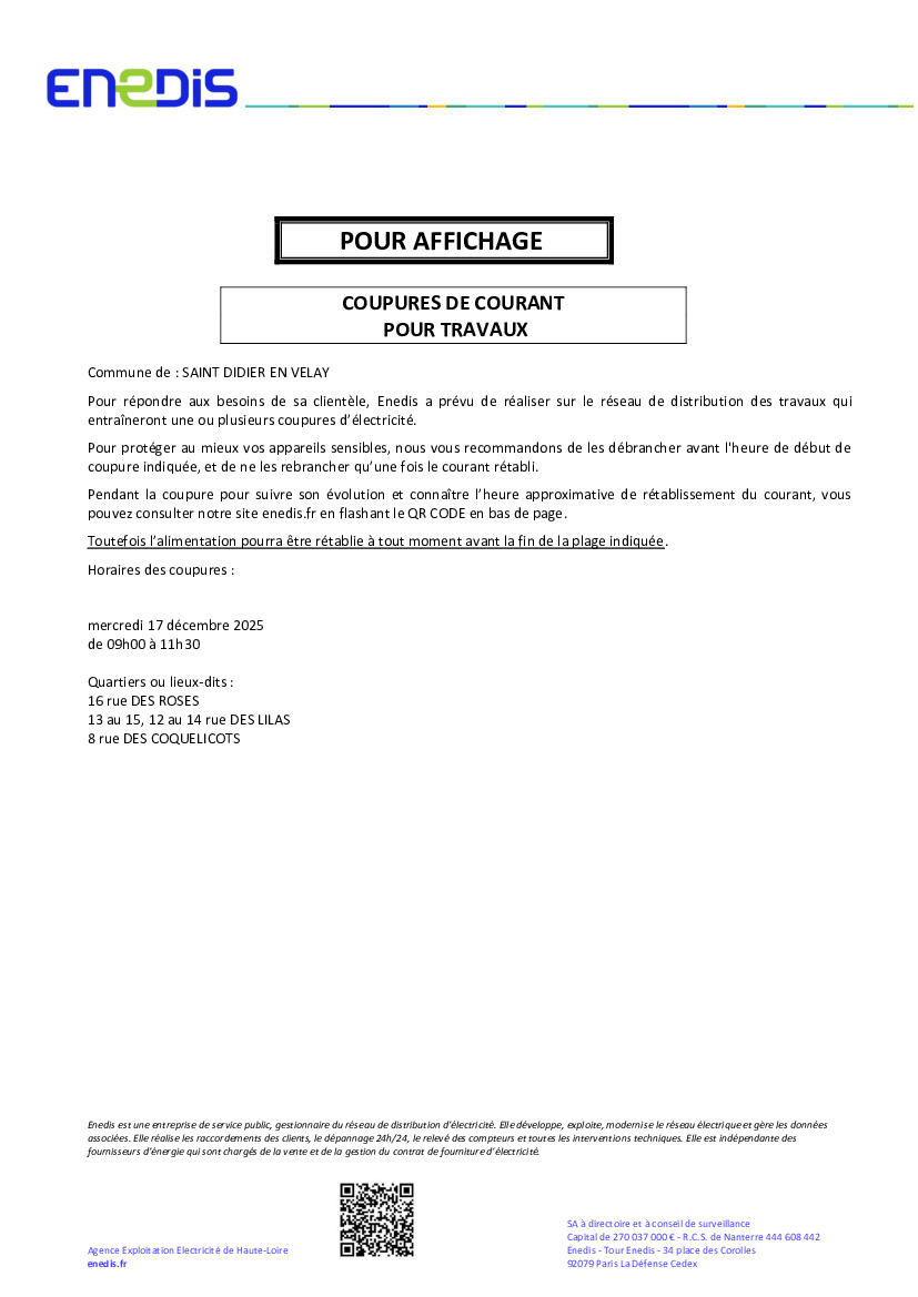⚡ COUPURES DE COURANT POUR TRAVAUX ⚡