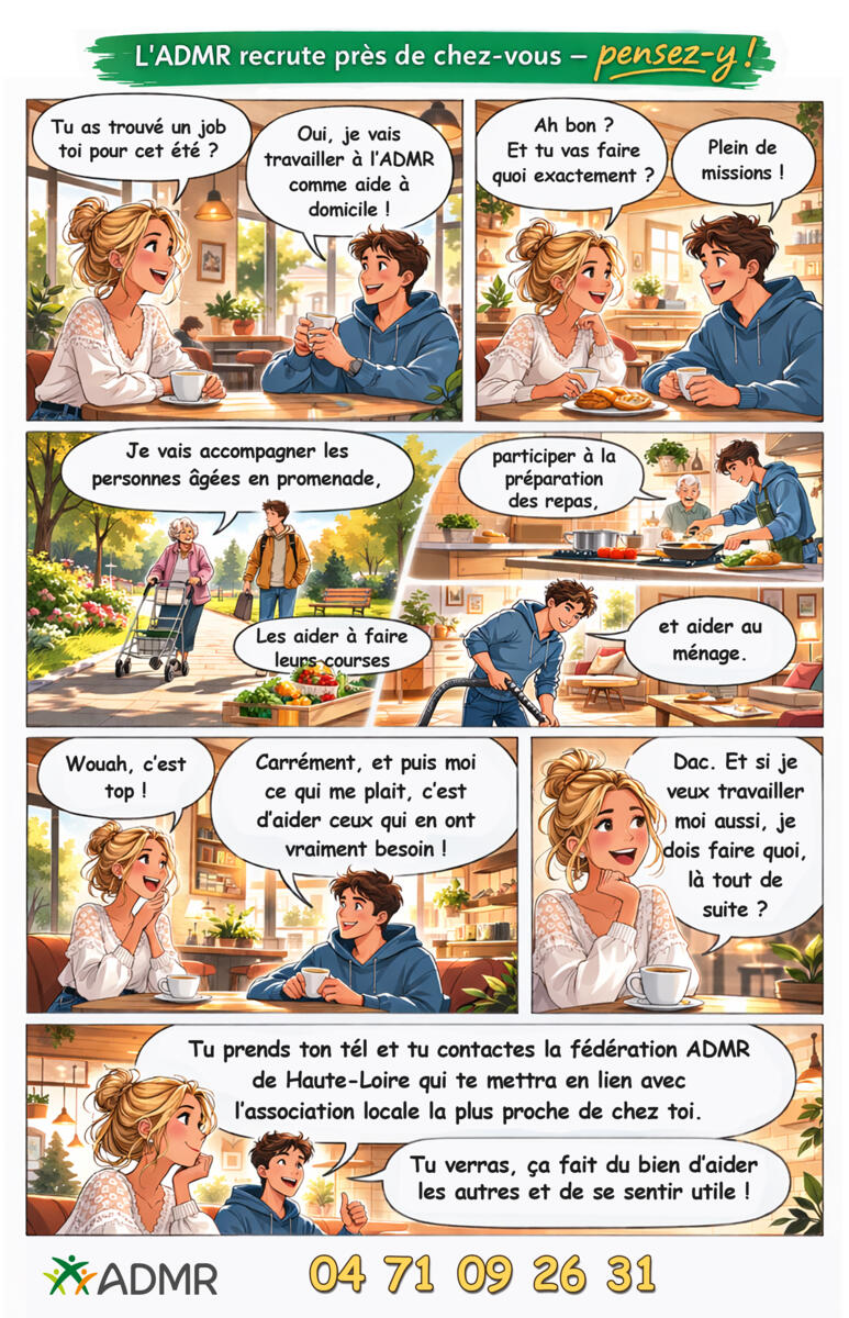 📞 Intéressé(e) ? Contactez la fédération ADMR de Haute-Loire : 04 71 09 26 31