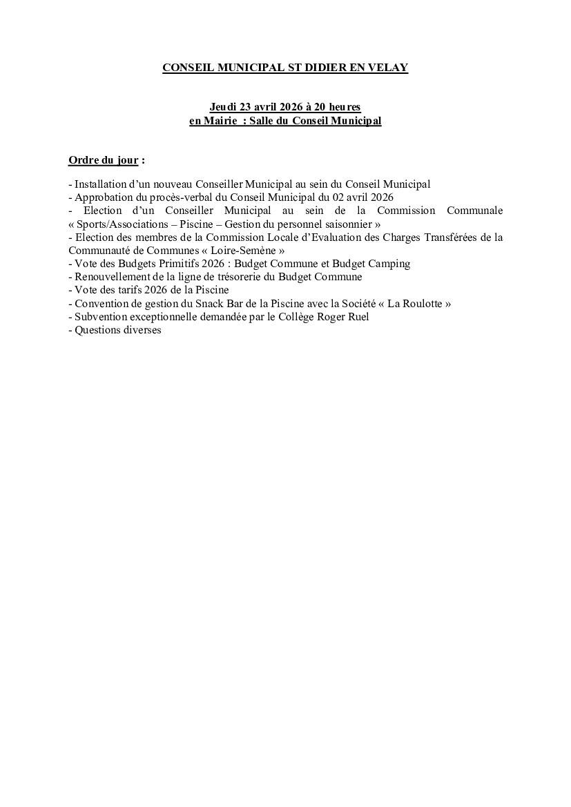 Ordre du jour du prochain conseil municipal, le 23 avril