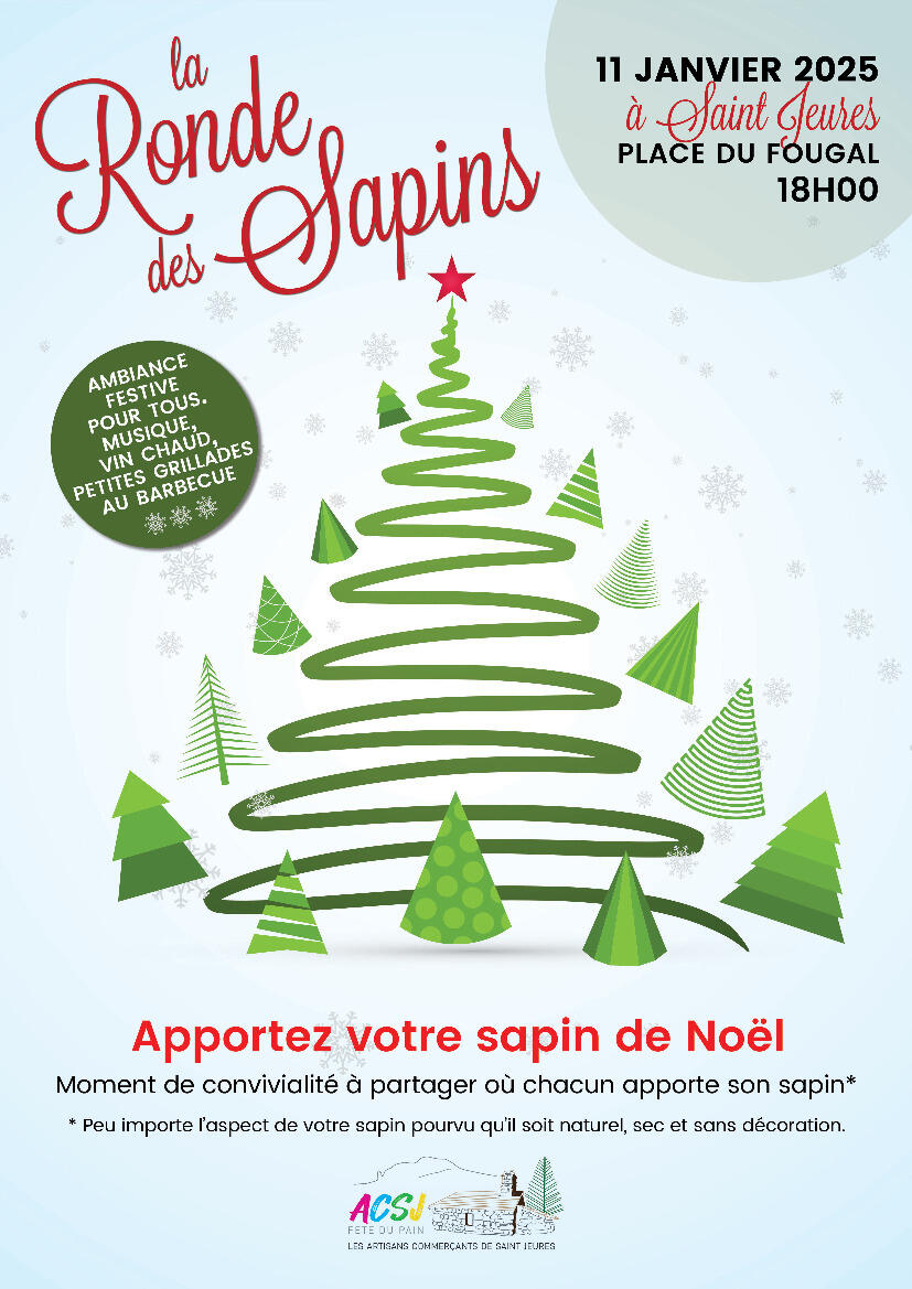 Les artisans et commerçants de St Jeures organise la traditionnelle ronde des sapins le samedi 11 janvier à 18h place du Fougal.