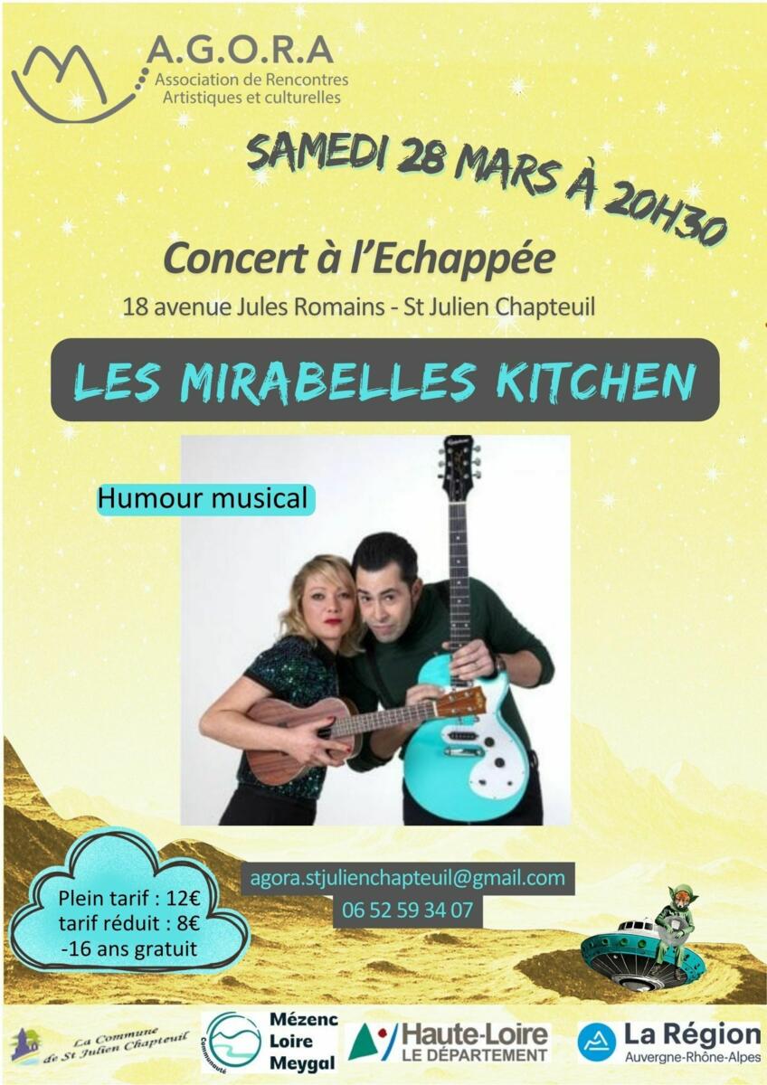 Concert "Les mirabelles kitchen" le 28/03 3/14/26 Concert "Les mirabelles kitchen" le 28/03 à 20h30 à l'Échappée.