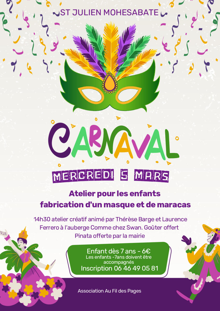 carnaval 3/3/25 Pour rappel animation mercredi après midi à St Julien Molhesabate quelques exemples de masques à réaliser 🎭