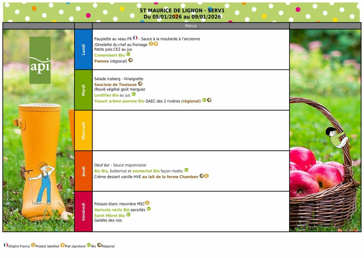🍽 Menus de la cantine – Semaine du 5 au 9 janvier 2026 🍽