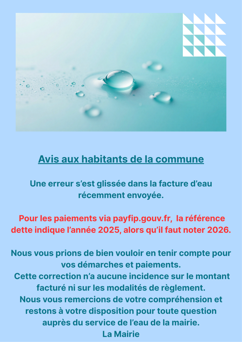 Avis aux habitants de la commune - Facture d'eau