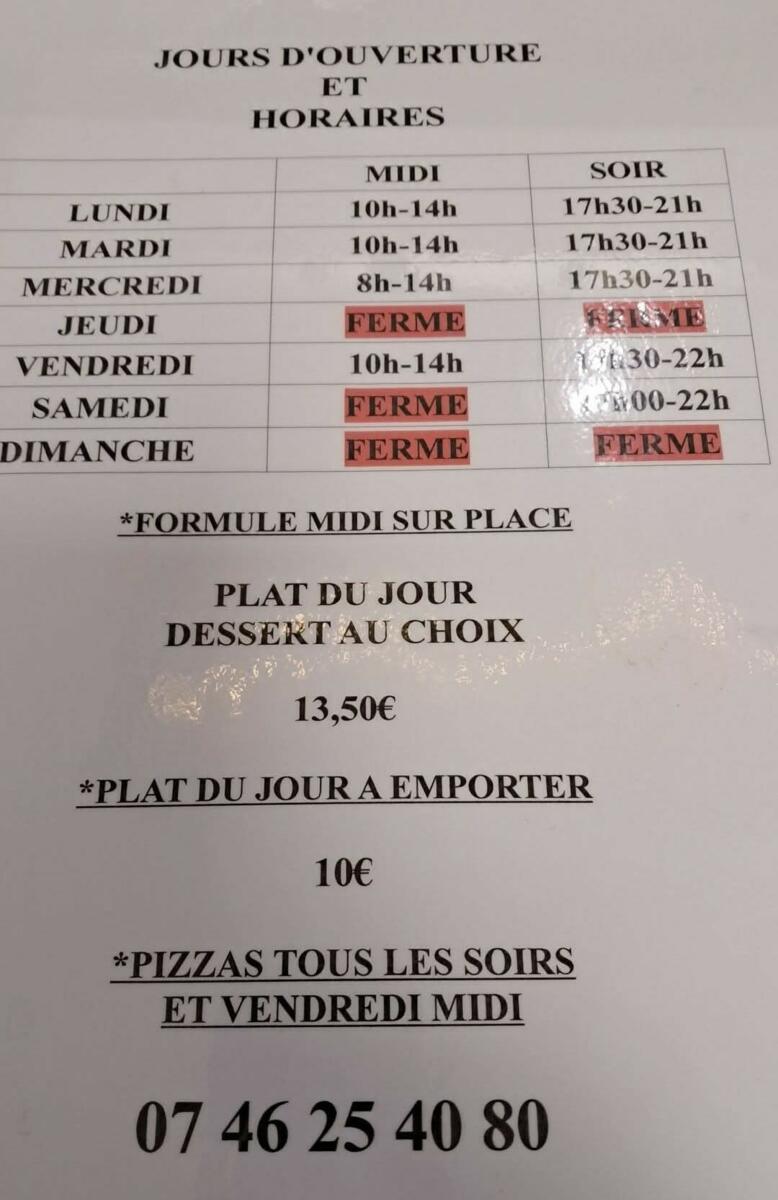 Pizzas tous les soirs et vendredi midi.