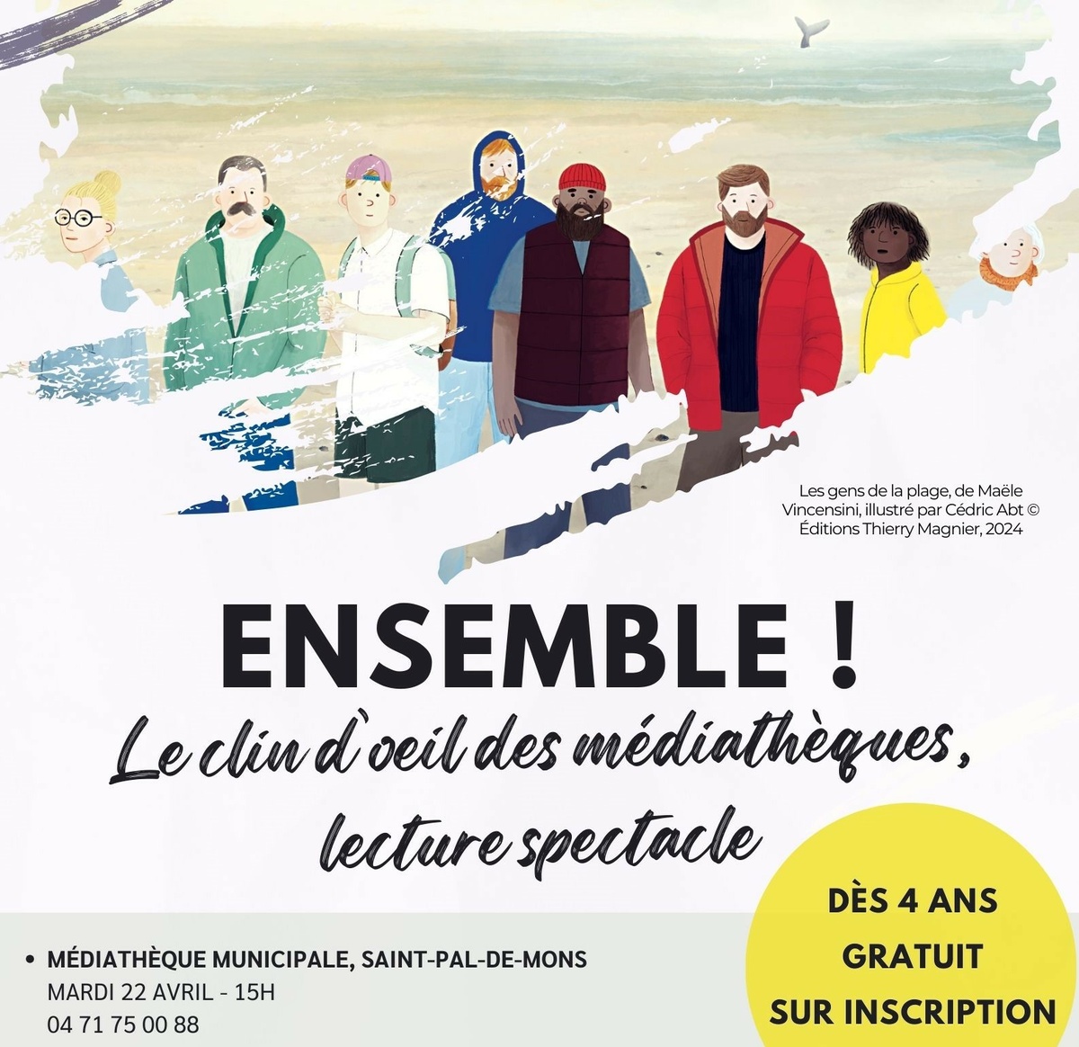 * Mardi 22 avril à 15h Clin d’œil des médiathèques : lecture spectacle autour de la thématique « ENSEMBLE »  à partir de 4 ans
