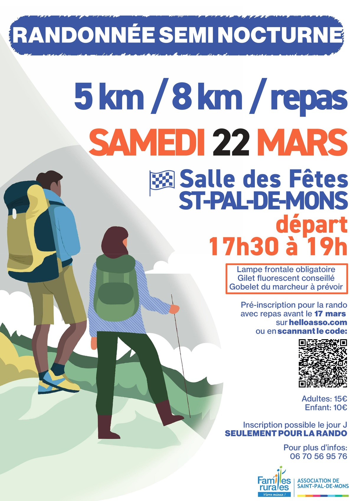 Rappel : 17 mars dernier délai pour s'inscrire au repas de la rando organisée par Familles Rurales (sur helloasso.com ou au Vival ou au Chansou) après cette date seule l'inscription pour la rando seule sera possible et ce jusqu'au jour J.