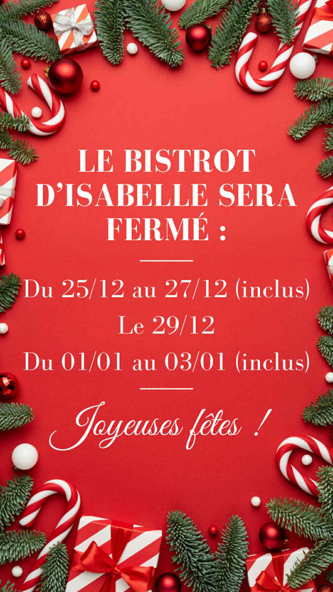 Fermeture du Bistrot d'Isabelle pendant les fêtes