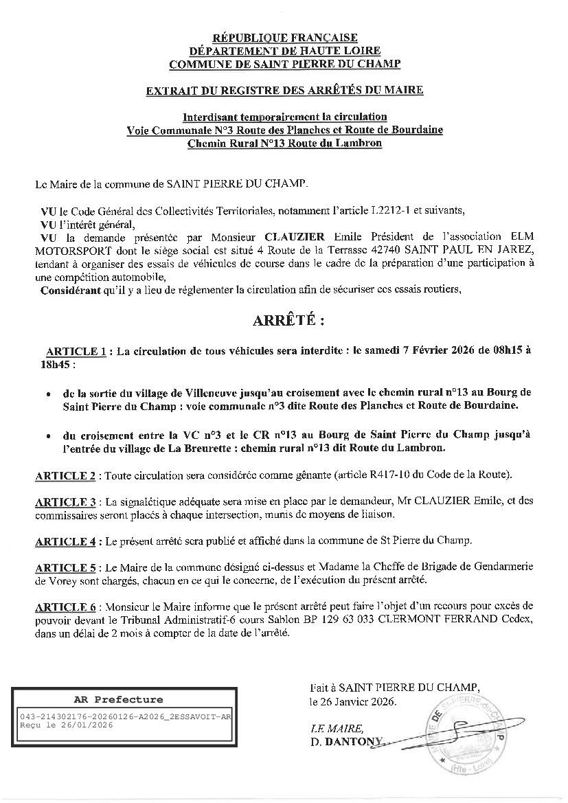 Your town hall / News / Circulation interdite le samedi 7 février 2026