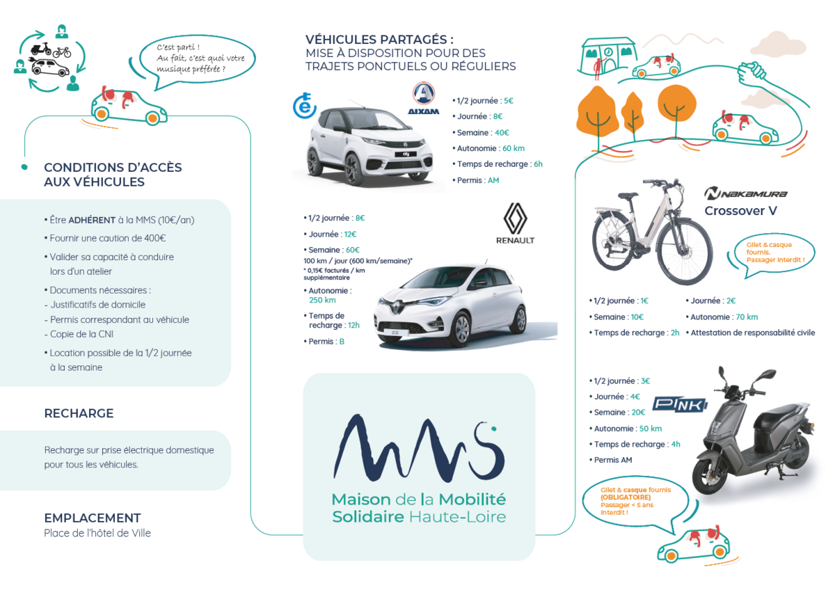 Dans le cadre du développement des mobilités solidaires et partagées sur notre territoire, la Maison de la Mobilité Solidaire Haute-Loire souhaite informer les habitants sur les solutions existantes, notamment en matière de véhicules partagés.