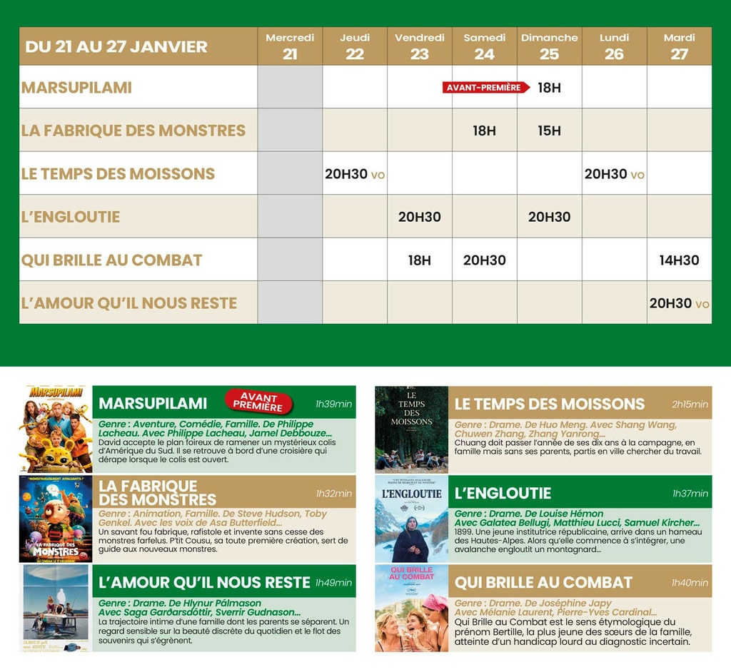 Au cinéma : du 21 au 27 janvier