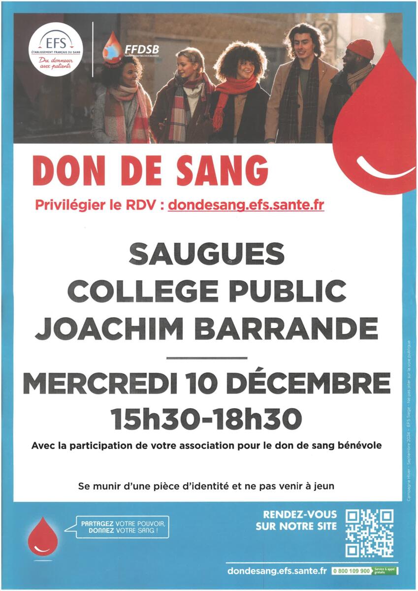 Don du sang mercredi 10 décembre à Saugues 🦸🩸