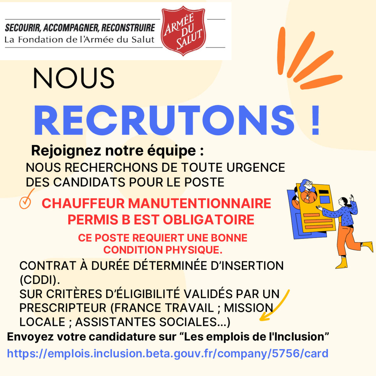 Your town hall / News / Recherche urgente de Chauffeur Manutentionnaire
