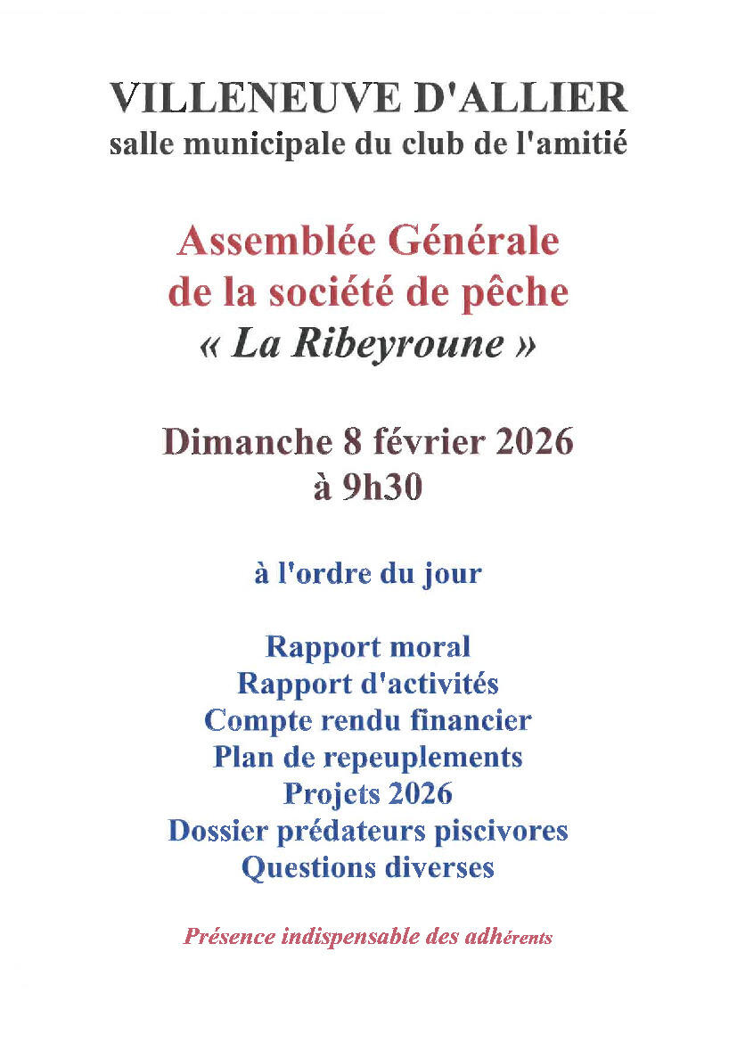 Your town hall / News / ASSEMBLEE GENERALE DE LA SOCIETE DE PECHE LA RIBEYROUNE