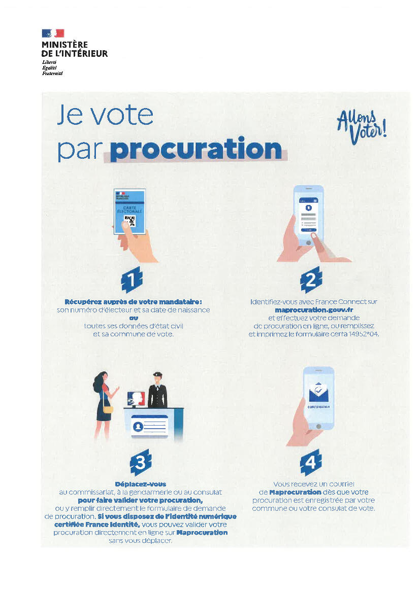 ELECTIONS MUNICIPALES 2026 ALLONS VOTER 3/5/26 JE VOTE PAR PROCURATION Plusieurs solutions : Source : Mairie de Villeneuve-d'Allier