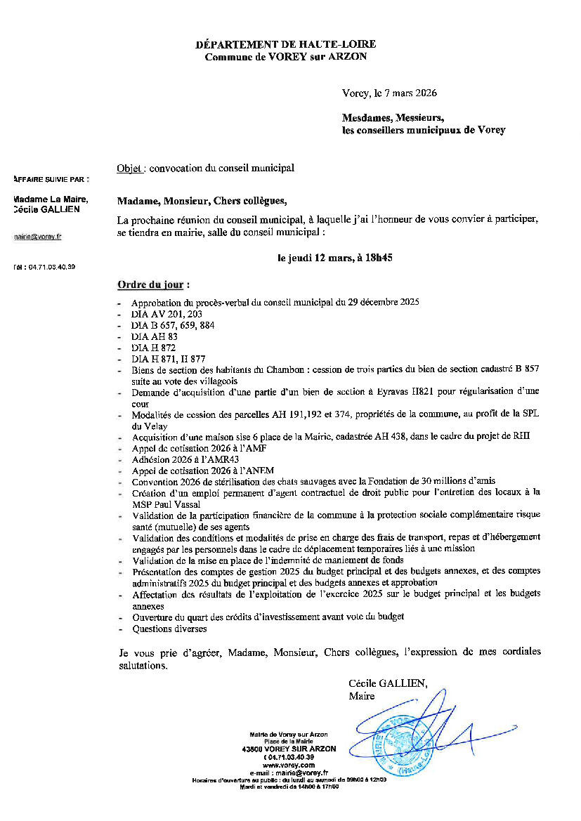 Prochain Conseil municipal le Jeudi 12 Mars 2026 à 18h45