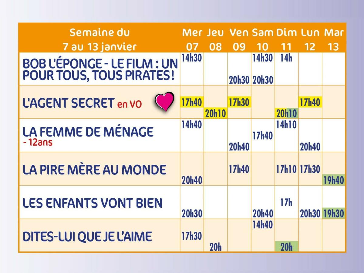 Programme ciné du 31 déc au 6 janvier