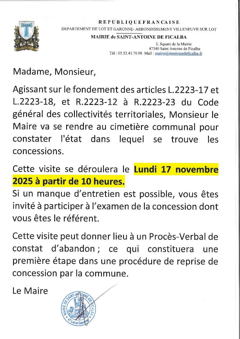 Information Cimetière : Entretien / Abandon de concession