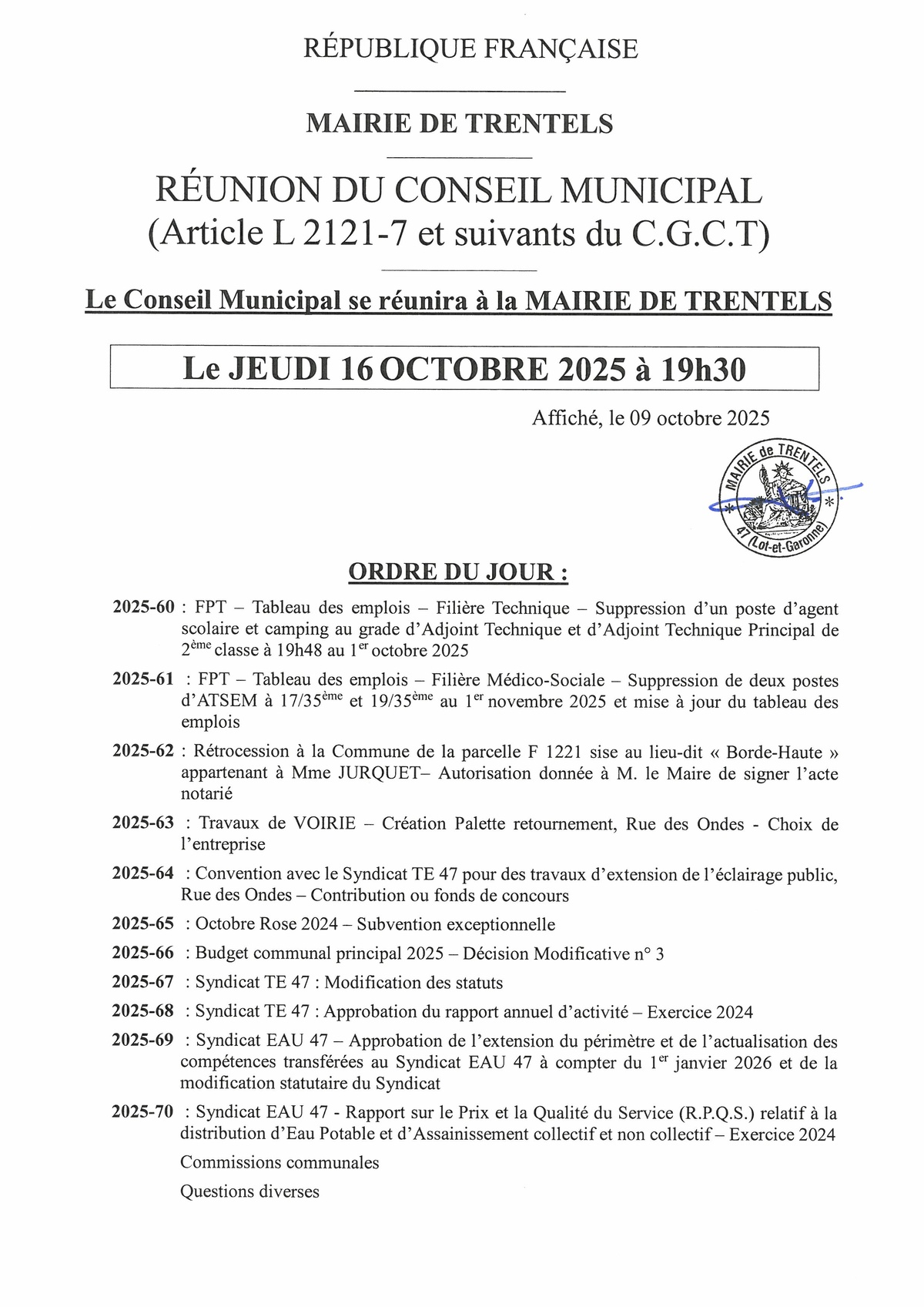 Your town hall / News / Conseil Municipal du jeudi 16 octobre 2025