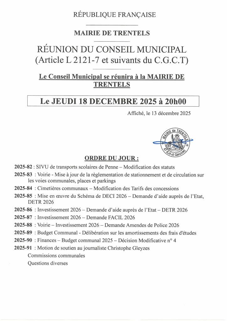 Your town hall / News / Conseil Municipal du jeudi 18 décembre 2025