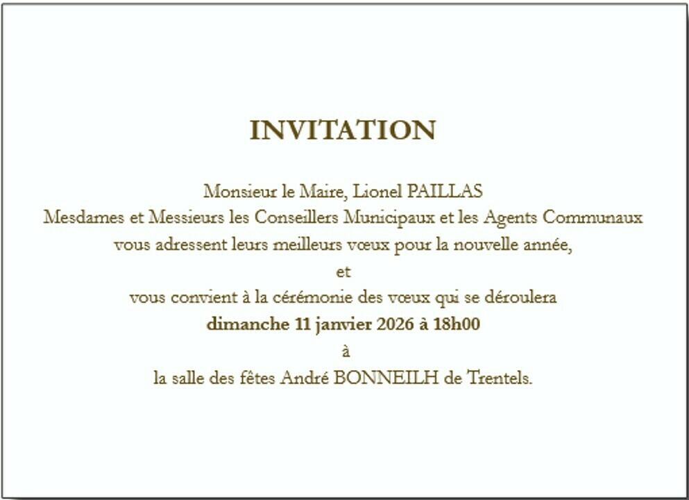 Your town hall / News / INVITATION à la cérémonie des Voeux 2026