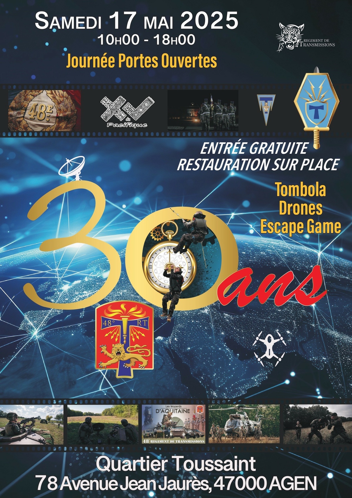 Le 48ème Régiment de Transmissions d'AGEN fête ses 30 ans et organise pour l’occasion sa journée portes ouvertes le samedi 17 mai 2025.