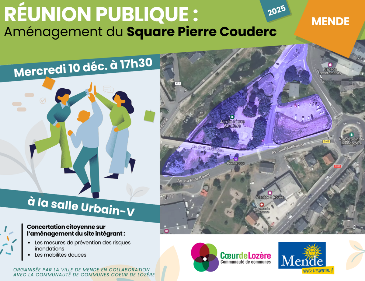 Vous êtes conviés à une réunion publique sur l'aménagement du square Pierre Couderc mercredi 10 décembre 2025 à 17h30 à la Salle Urbain-V