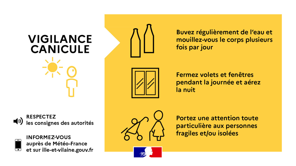En raison des conditions météorologiques attendues qui prévoient une augmentation significative des températures dans le département à partir de samedi, sans dépasser les seuils biométéorologiques, la Préfecture vous informe d'une période de chaleur, vigilance météorologique jaune à compter de samedi 28 juin à 12 h 00 : niveau épisode persistant de chaleur.