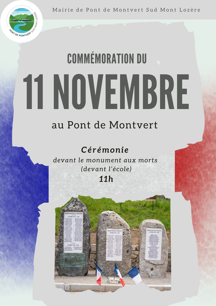 Mardi 11 novembre, à 11 heures, la Mairie de Pont de Montvert - Sud Mont Lozère vous donne rendez-vous à l'Estournal, pour la commémoration du 11 novembre.