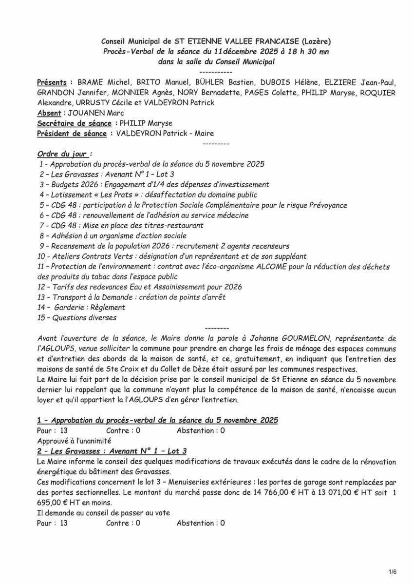 Your town hall / News / PV du conseil municipal du 11 décembre 2025
