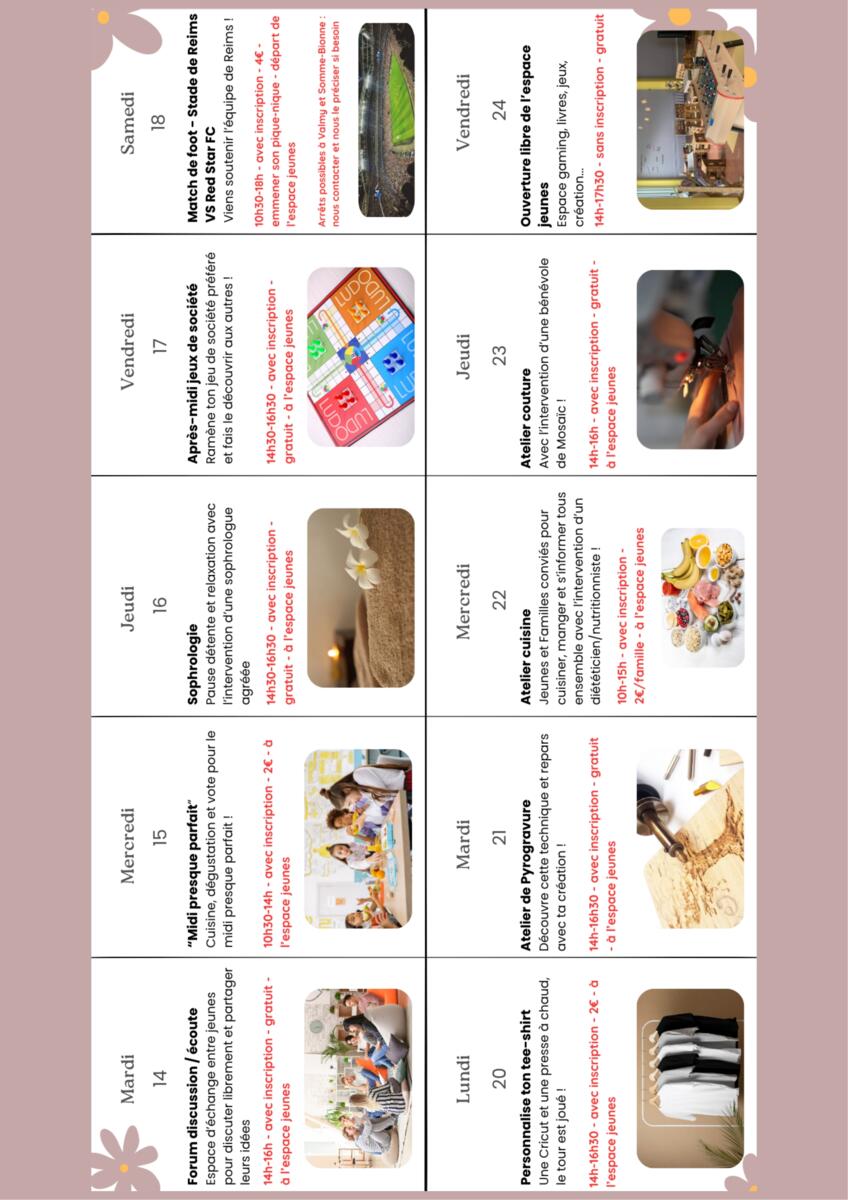Les vacances approchent et on vous a préparé un programme plein d’activités : bien-être, création, sorties, ateliers… il y en aura pour tous les goûts 🤩