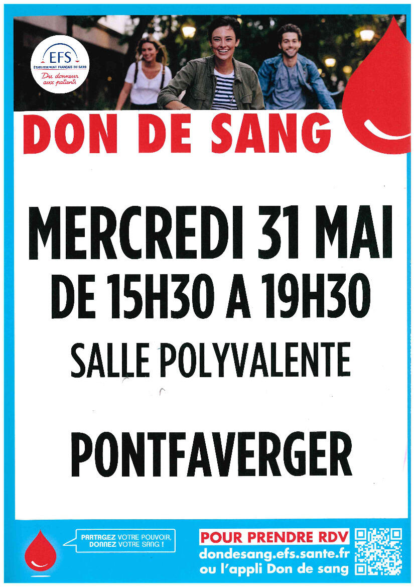 Après-midi don du sang à Pontfaverger mardi 16 décembre