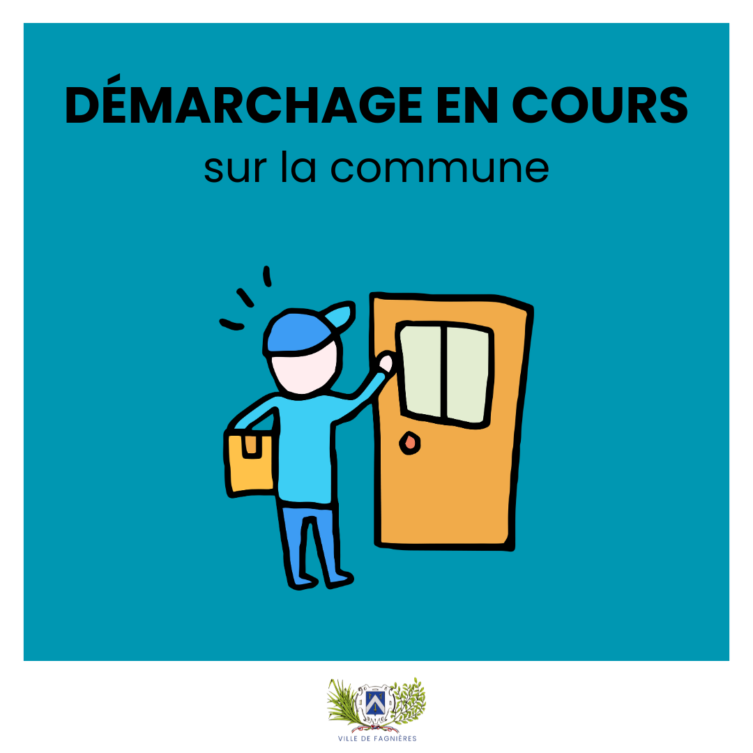 Mme BORDE Karine, représentante de la société Confort Sécurité +, s’est présentée en mairie afin de nous informer qu’elle effectuera des opérations de démarchage à domicile sur la commune de Fagnières du 26 février au 31 mars, aux alentours de 10h.