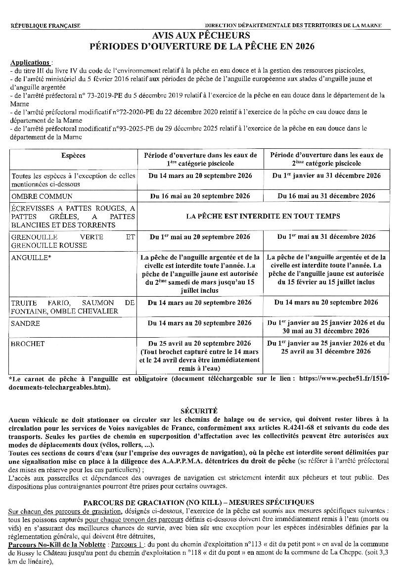 VOICI LE CALENDRIER DE PÉRIODE D 'OUVERTURE DE LA PÊCHE POUR 2026