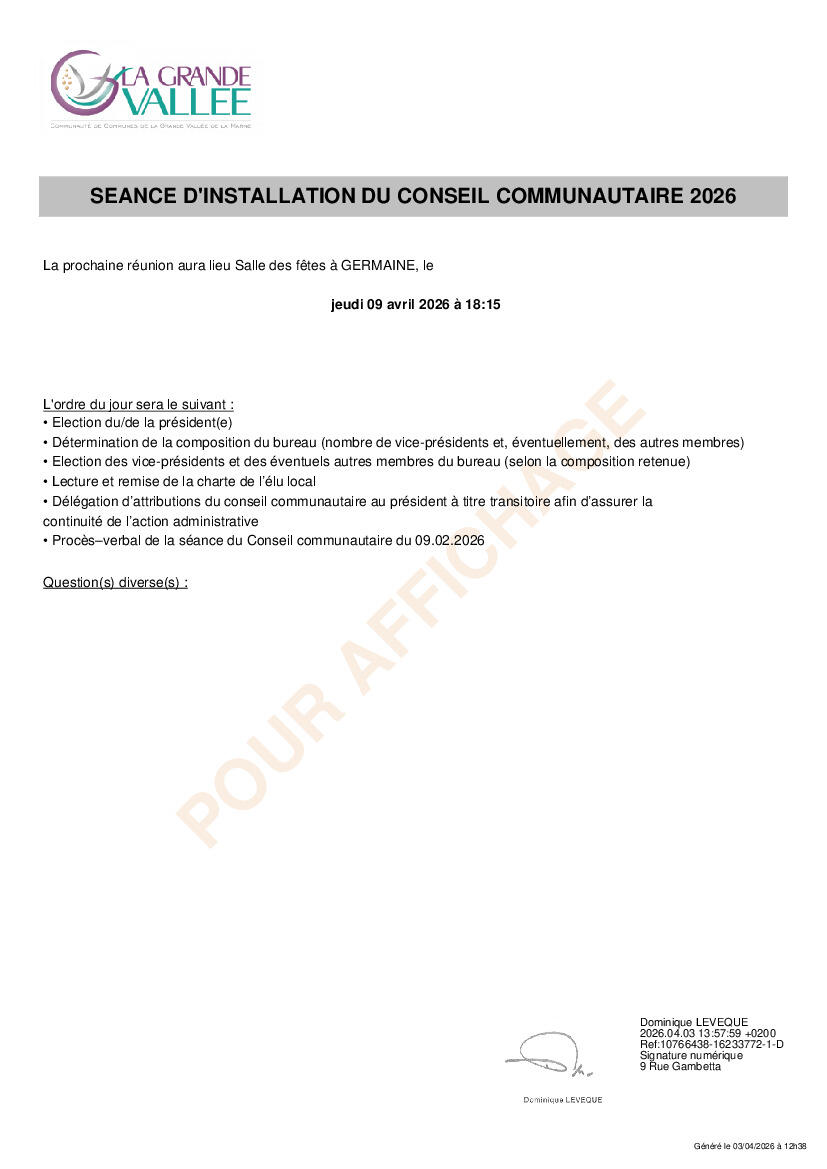 Convocation du Conseil communautaire 09.04.26