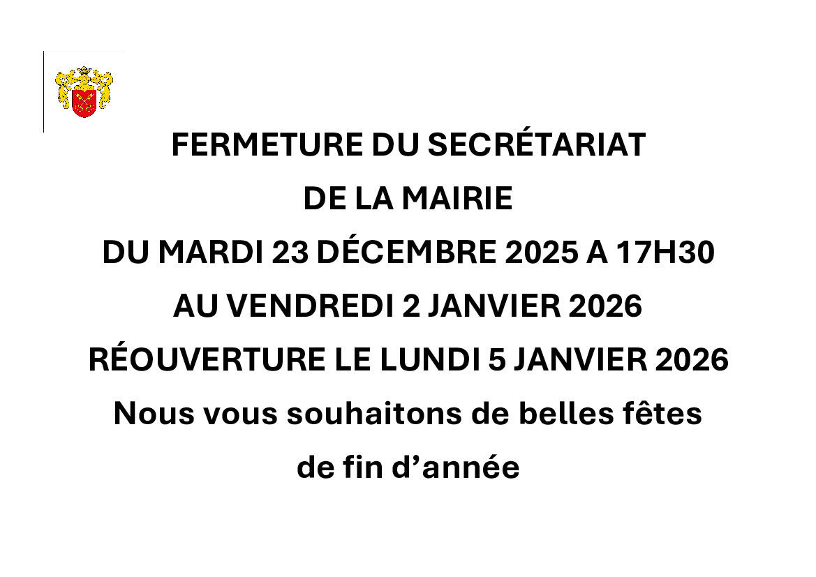 Your town hall / News / FERMETURE DU SECRÉTARIAT DE LA MAIRIE