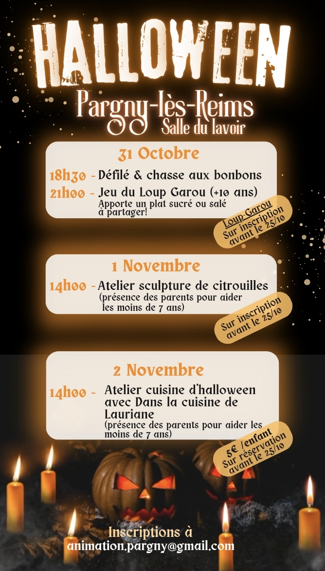 📝Et vous pouvez encore vous inscrire avant le 25/10 à animation.pargny@gmail.com aux activités proposées :