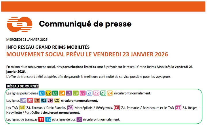 Durant cette journée, des perturbations sont susceptibles d’affecter le réseau Grand Reims Mobilités.