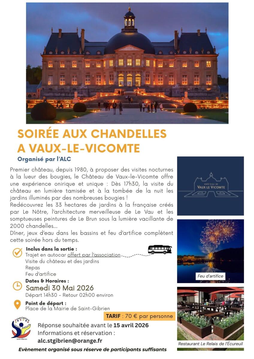 Sortie à Vaux-le-Vicomte le 30 mai 2026. 🚦OUVERT A TOUS ADHERENTS OU NON🚦