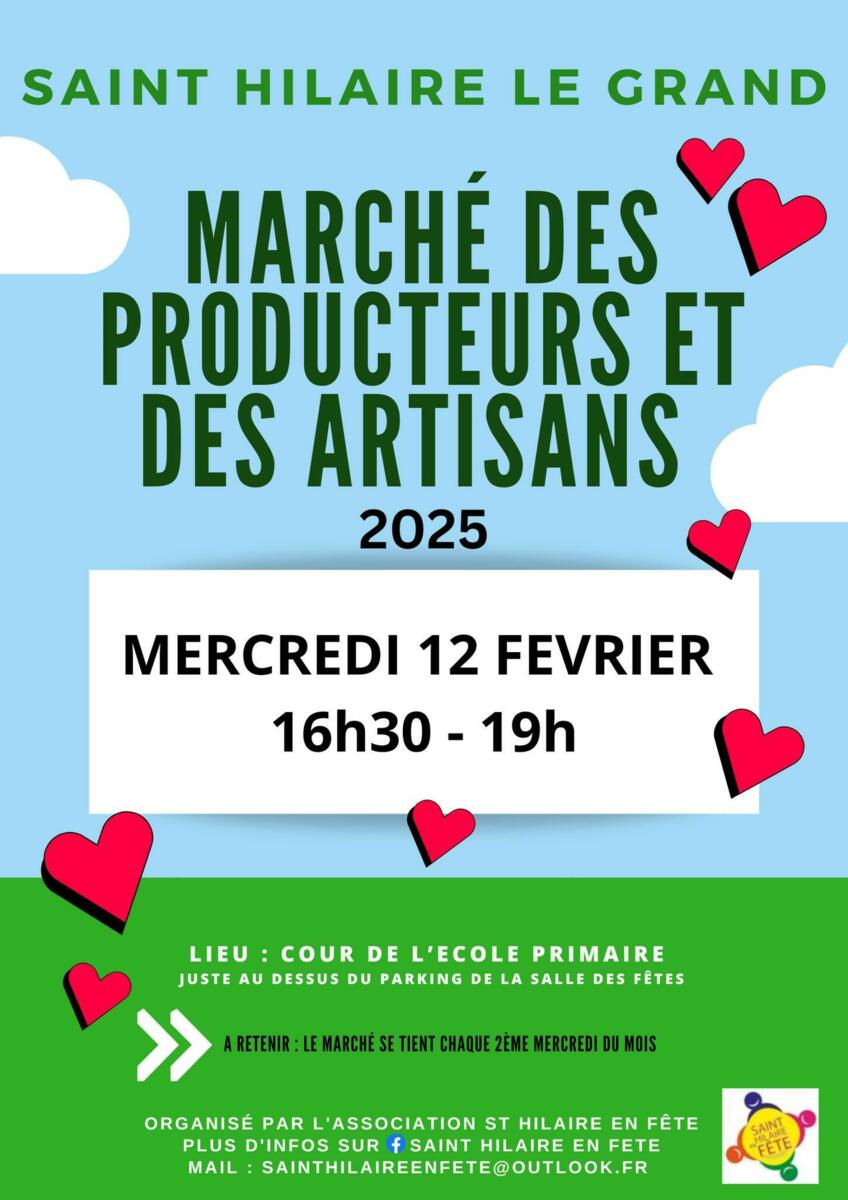 Marché des producteurs et des artisans 2/3/25 MERCREDI 12 FÉVRIER 2025 DE 16H30 À 19H00 dans la cour de l'école