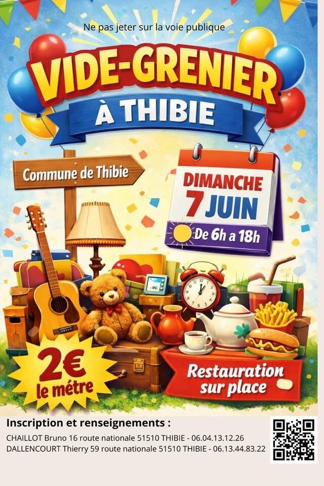 Et le comité des loisirs de Thibie vous propose le Dimanche un vide grenier place de la mairie