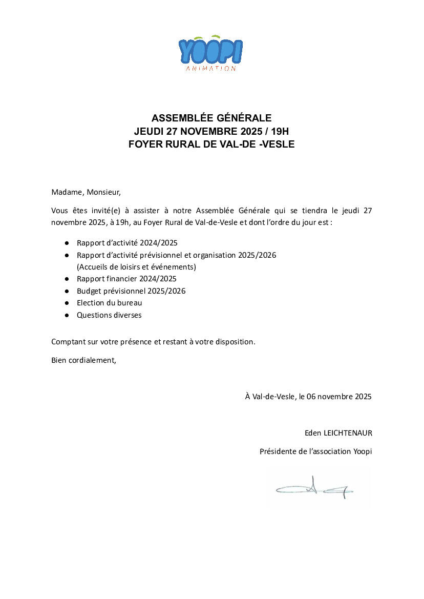 ASSEMBLÉE GÉNÉRALE 2025 ASSOCIATION YOOPI