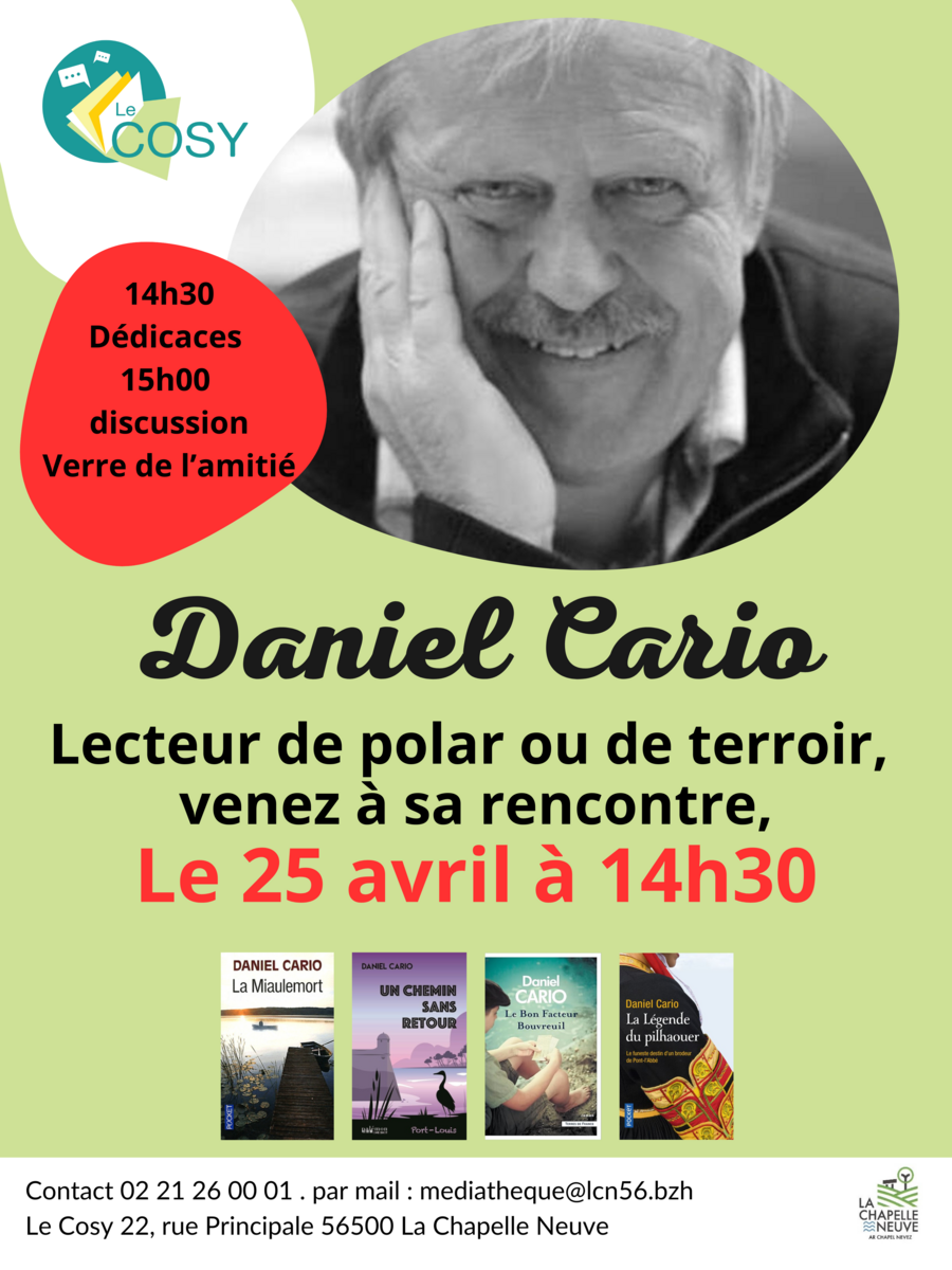 On pourrait le qualifier de Simenon breton le Port-Louisien Daniel Cario a publié son premier roman en 2004 . Il vient à votre rencontre pour une discussion et une séance de dédicaces. Il pourra vous procurer ses derniers romans.