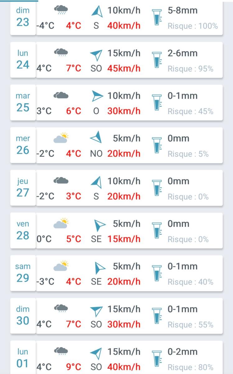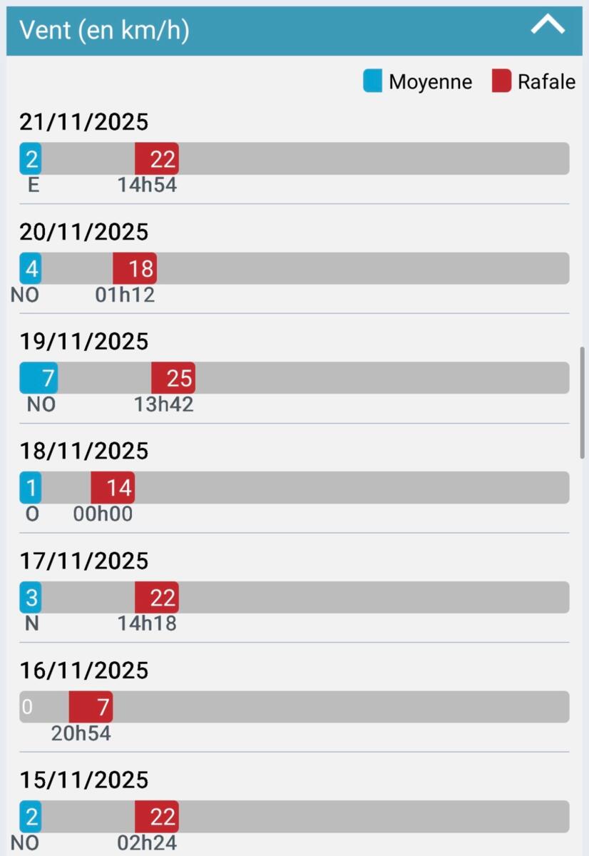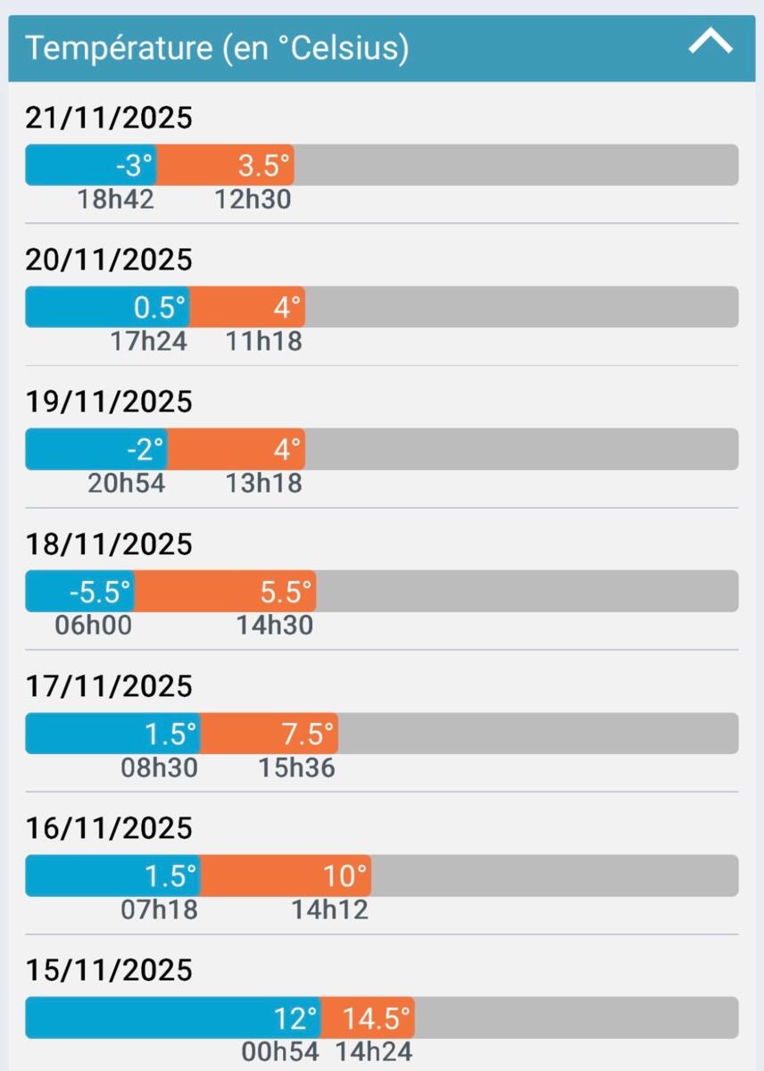 Petit point météo en ce samedi 22 novembre 2025, avec la météo heure par heure, une prévision sur quelques jours et un retour sur les derniers jours.