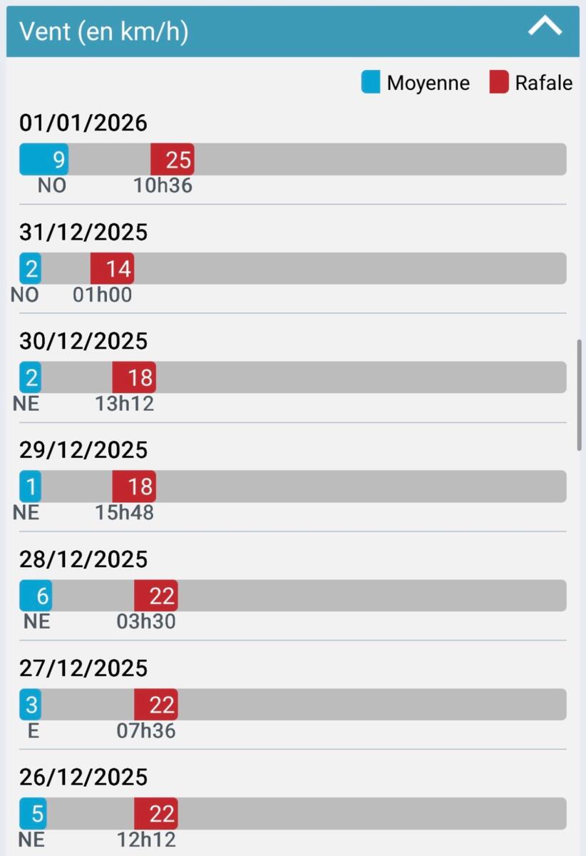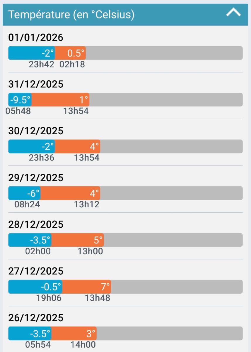 Petit point météo en ce vendredi 2 janvier 2026, avec la météo heure par heure, une prévision sur quelques jours et un retour sur les derniers jours.