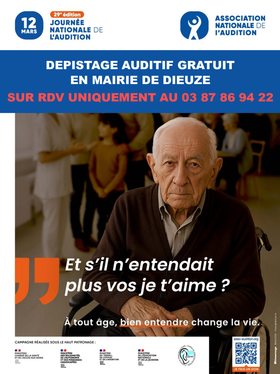 👂 À l'occasion de la Journée Nationale de l'Audition, jeudi 12 mars 2026, venez tester gratuitement votre audition en Mairie de Dieuze