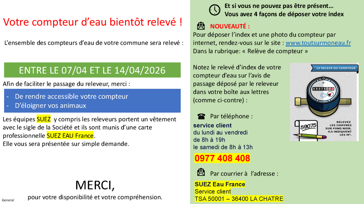 đą Information de SUEZ đ§ RelevĂ© des compteurs dâeau Ă venir