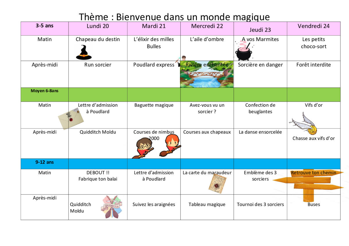 Nous vous prions de trouver ci-joint le planning du Centre de Loisirs pour les prochaines vacances de la Toussaint